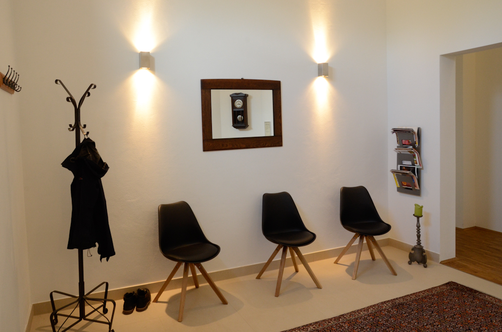 Die Praxis befindet sich im denkmalgerecht restaurierten und neu gestalteten Torhaus in Anger–Crottendorf. Sie ist mit öffentlichen Verkehrsmitteln gut zu erreichen. Durch den barrierefreien Aufgang sind Sie auch als Rollstuhlfahrer herzlich willkommen. Klicken Sie auf die Bilder, um einen ersten Eindruck zu bekommen.